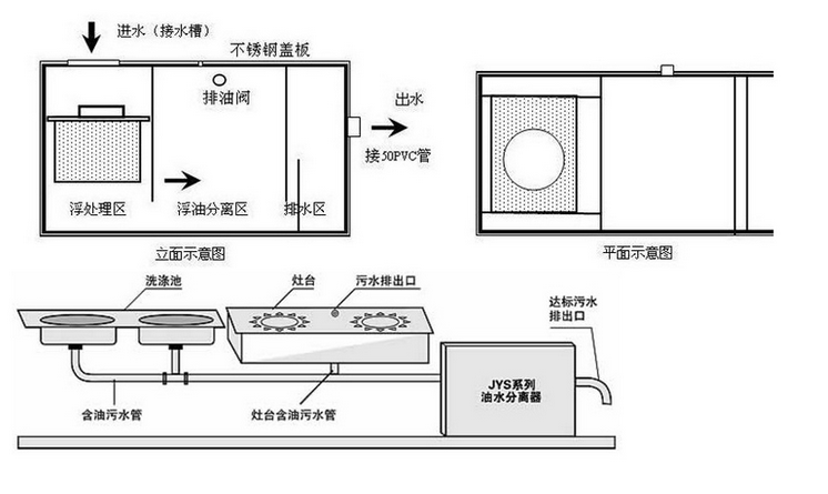 4.物理分選方法:油水分離器用于對(duì)含油廢水進(jìn)行油水分離,其工作原理是通過(guò)進(jìn)水口進(jìn)入,過(guò)濾后去除固體殘留物,水中的油由下至上經(jīng)破乳后油水分離,然后由底部出口排出。