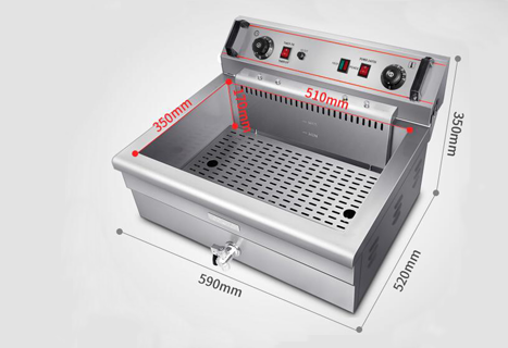 產品品牌 型號 外形尺寸 590*520*350 電壓 220V 油煙容積 20L 內形尺寸 510*350*170 頻率 50hz 加熱功率 4.8KW 炸網尺寸 500*280*160 凈重 12.6kg 售后方式 質保兩年