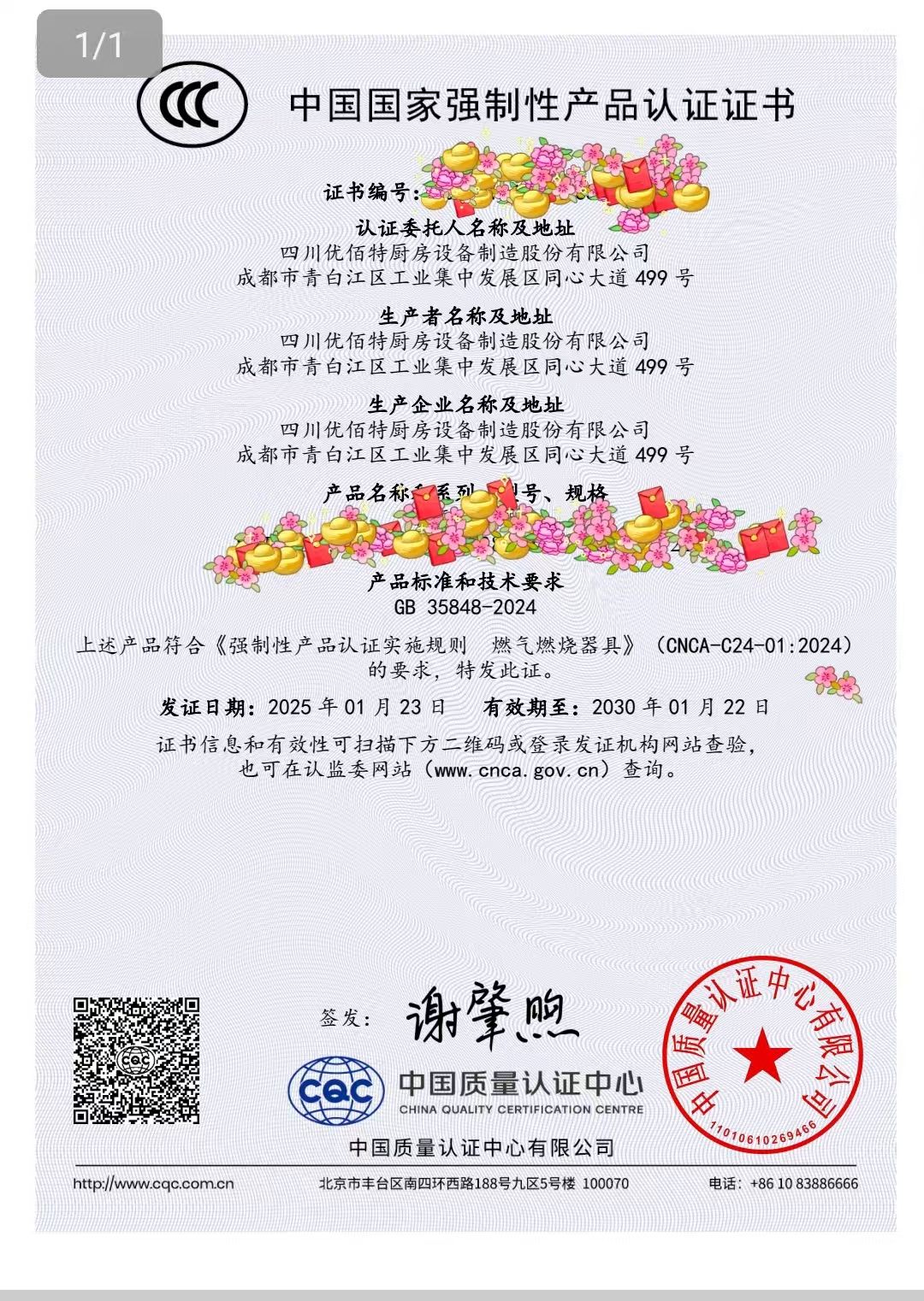 熱烈祝賀我司獲得商用爐灶3C強(qiáng)制認(rèn)證證書