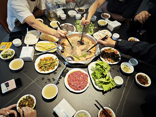 這也給了同事們品嘗沿途美食的機會。當快到12點時,全體人員便從高速路出來,在一家牛肉館品嘗當地美食。全體銷售部的人員齊聚一堂,有說有笑,好不熱鬧鬧。